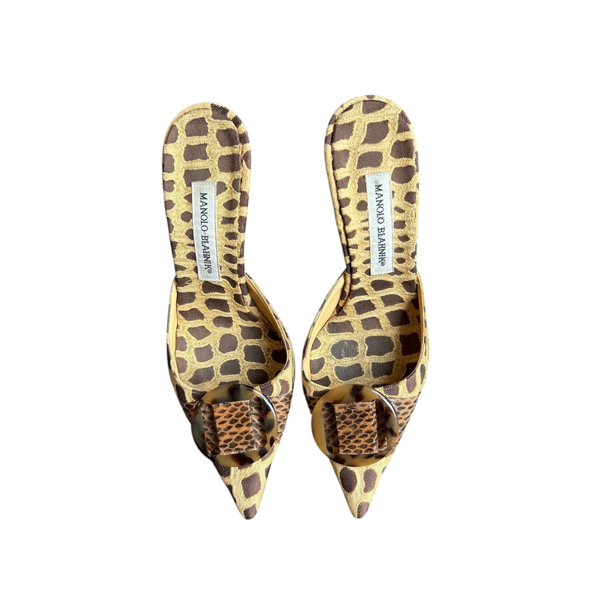 Vintage Manolo Blahnik animal print polka dot mule heels/ 39.5