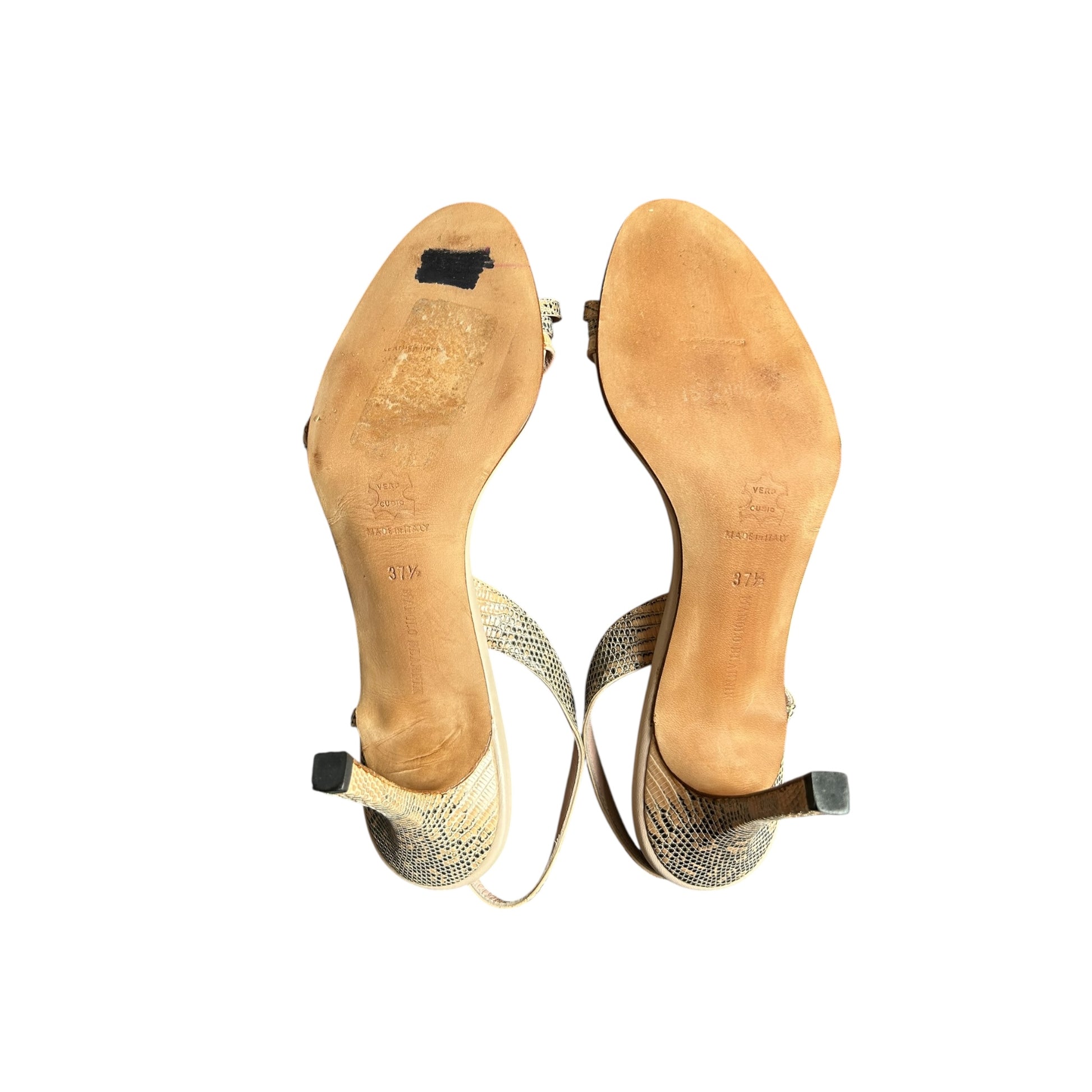 Vintage Manolo Blahnik snake skin sandal heels / 37.5