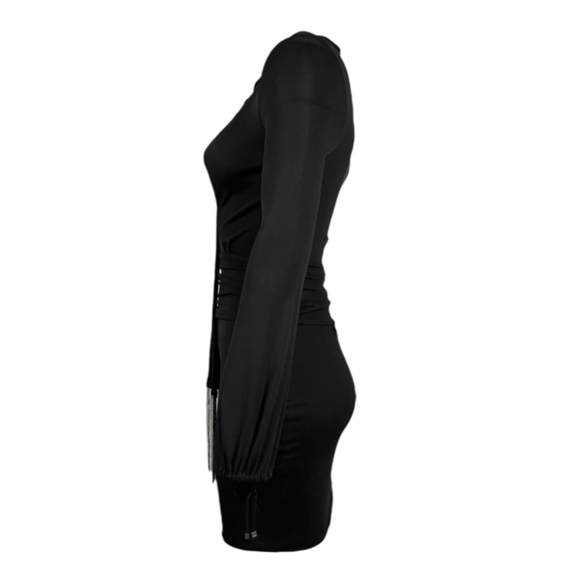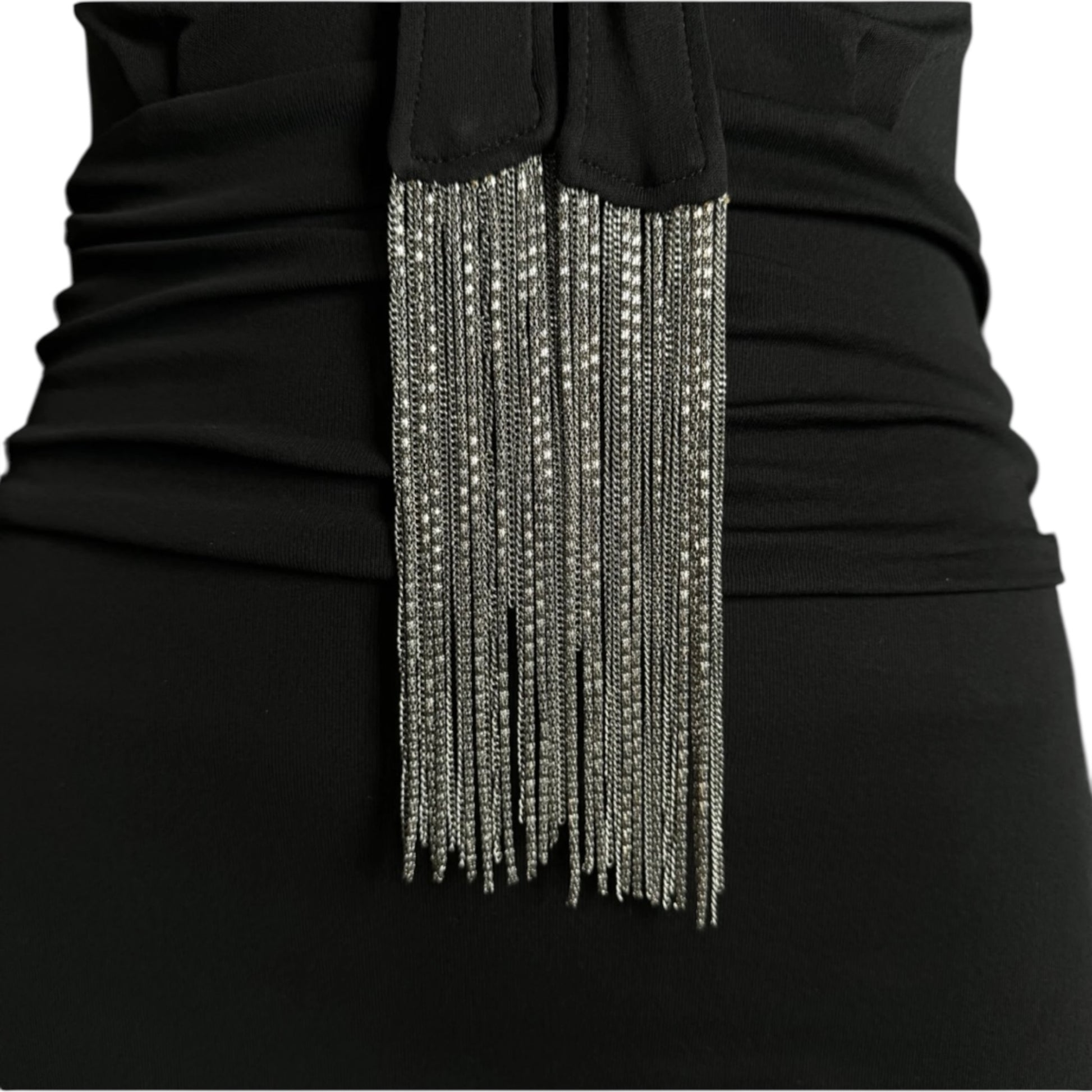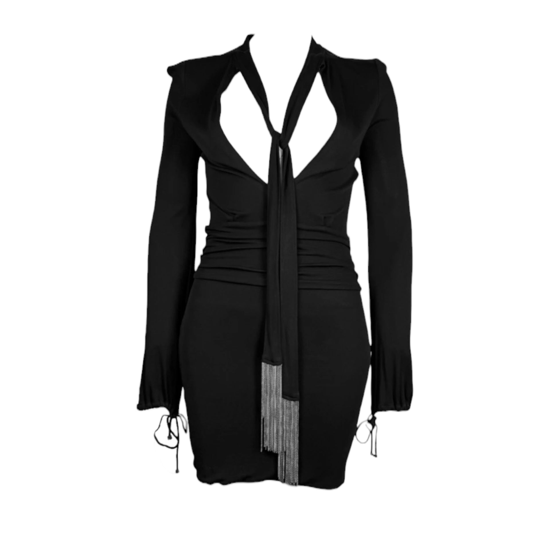 Vintage Gucci Fall 2006 Runway Black Chain Fringe Low Cut Long Sleeve Dress