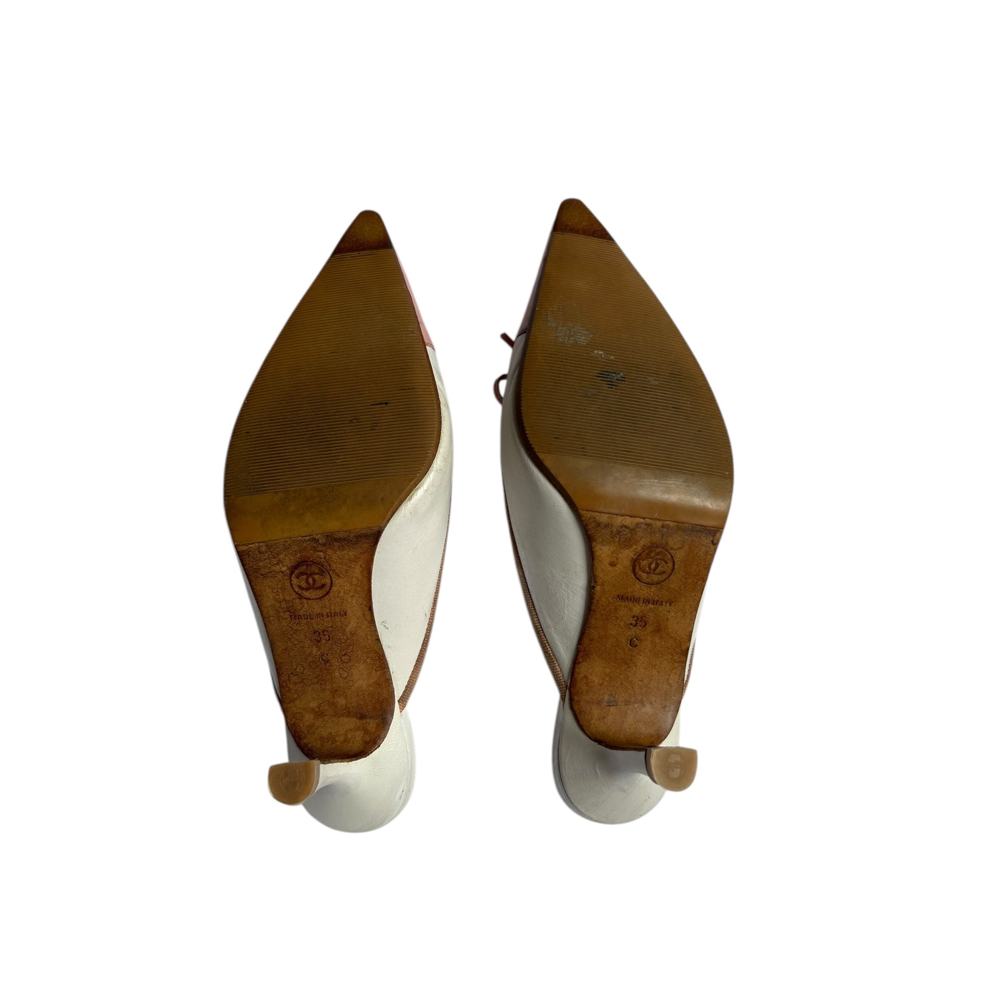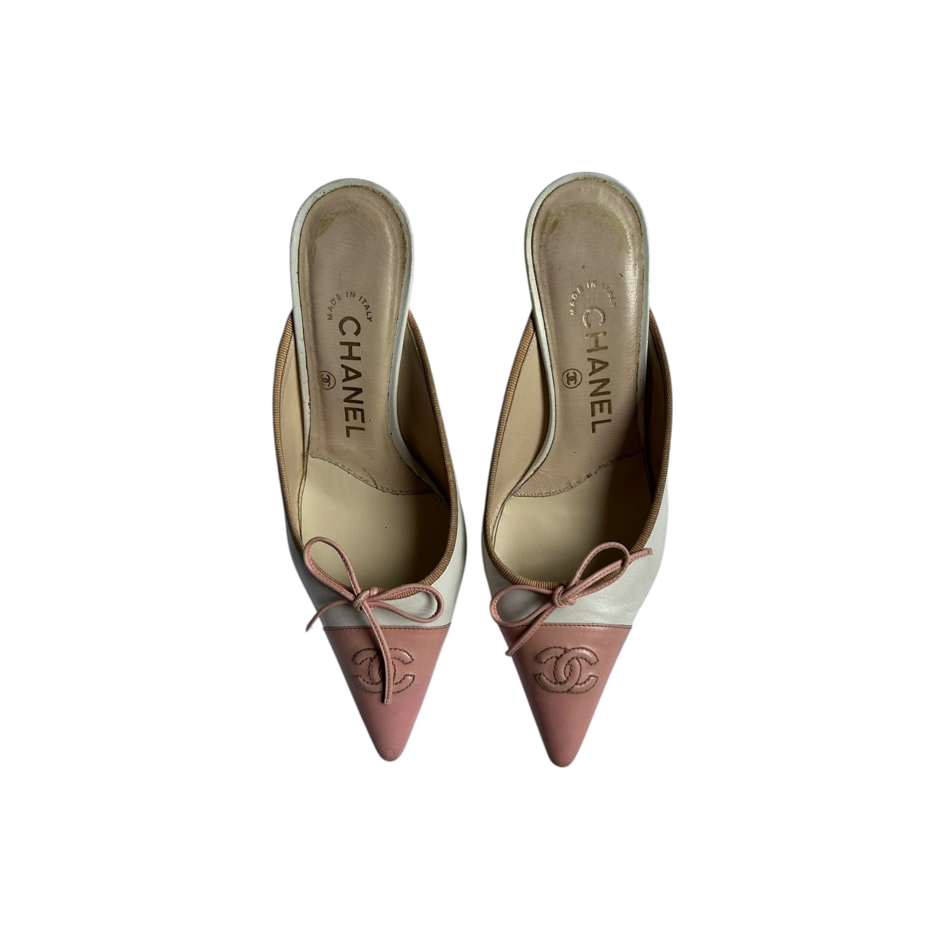 Vintage Chanel CC interlocking logo pink white mules by Karl Lagerfeld/ 35
