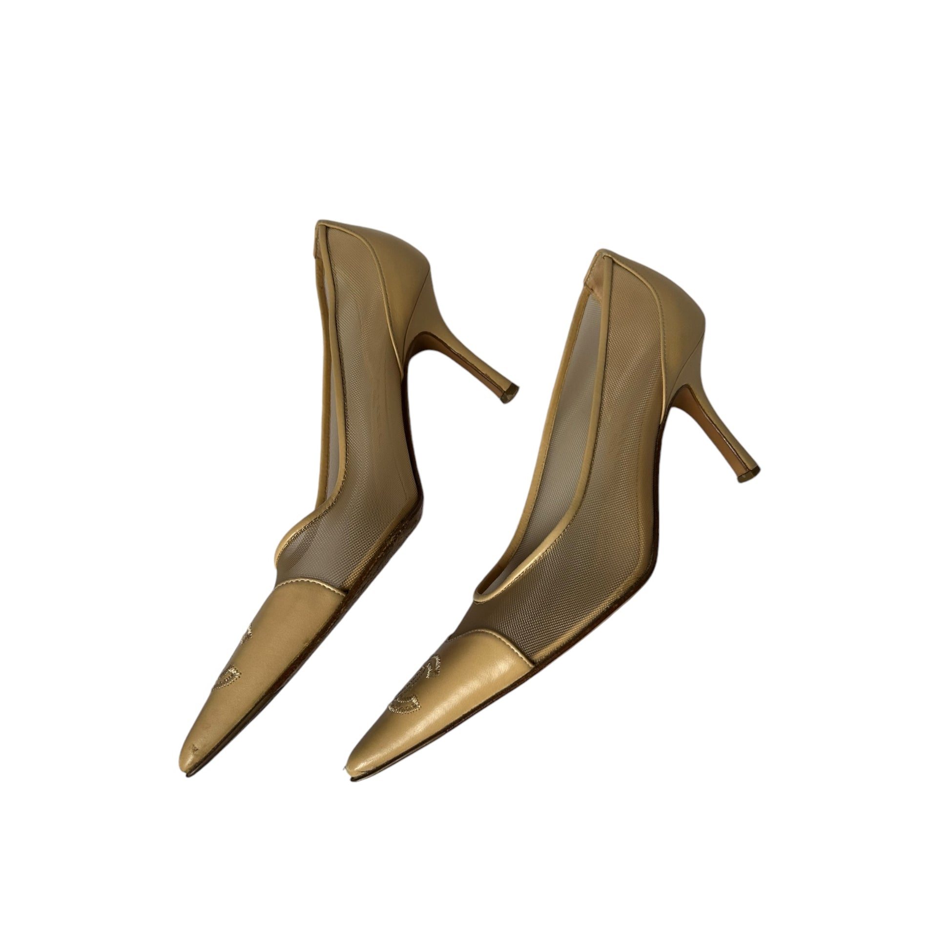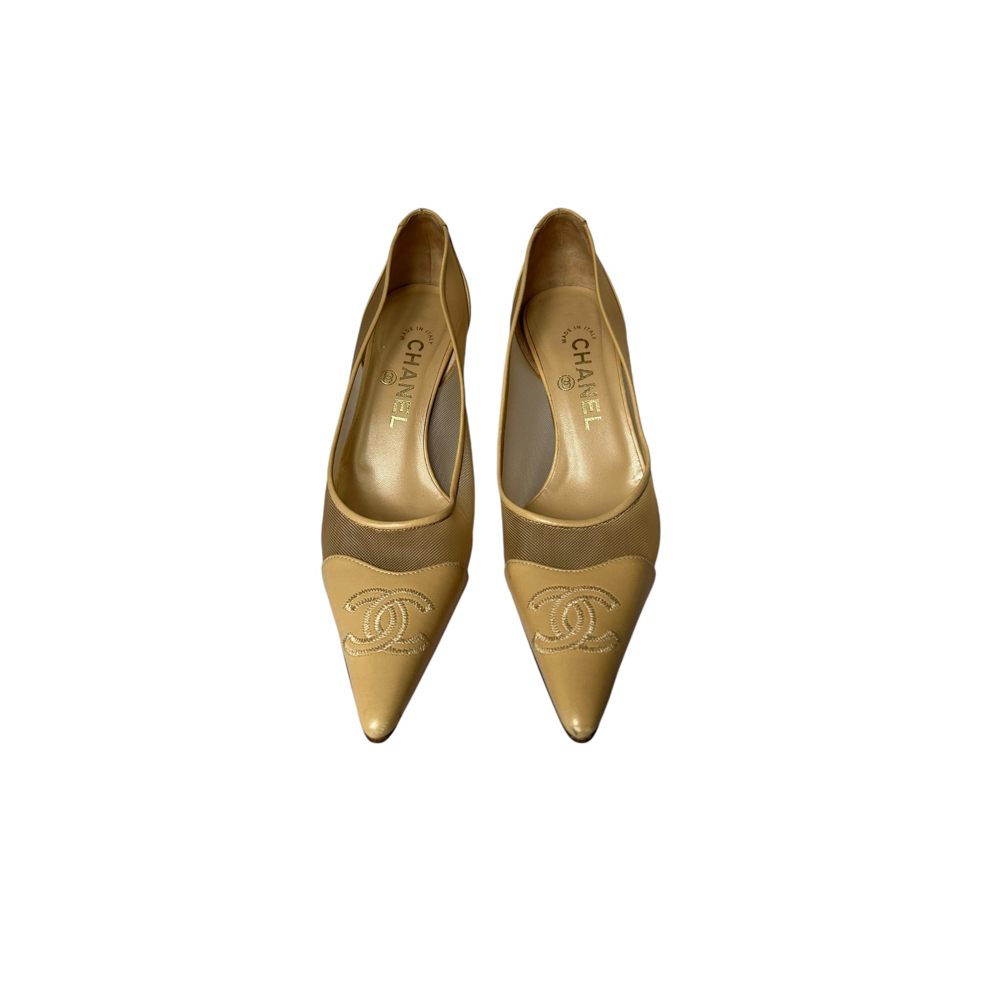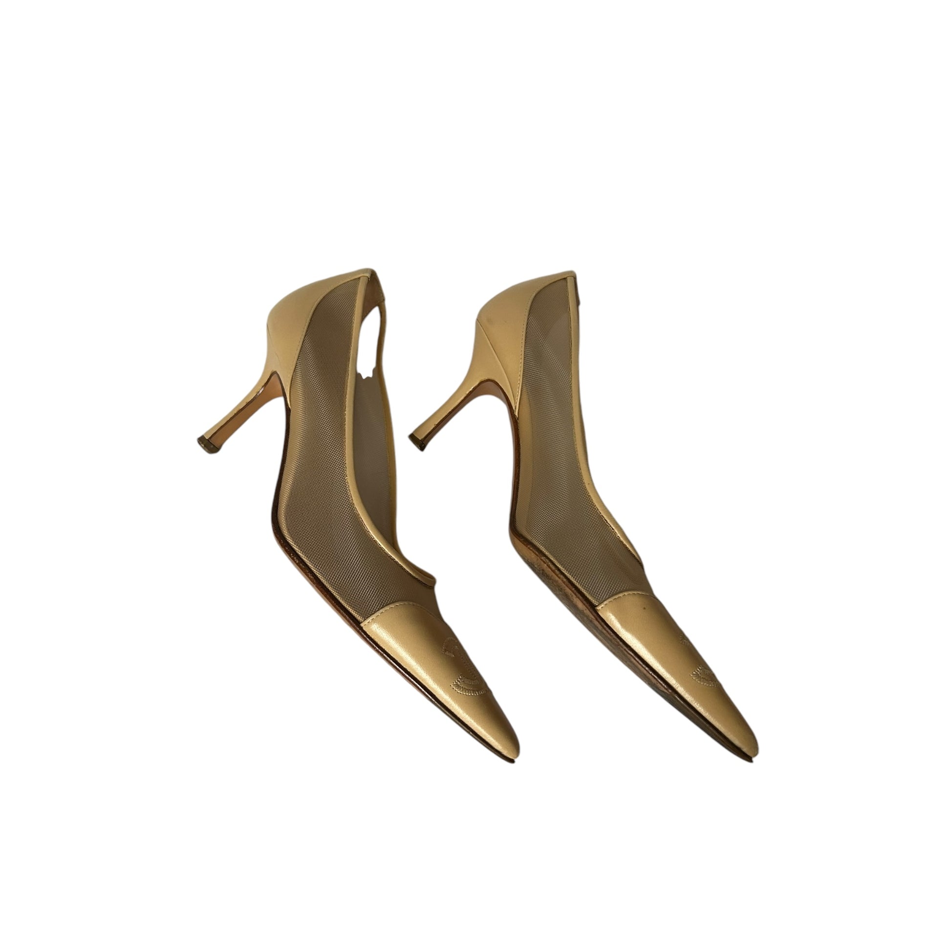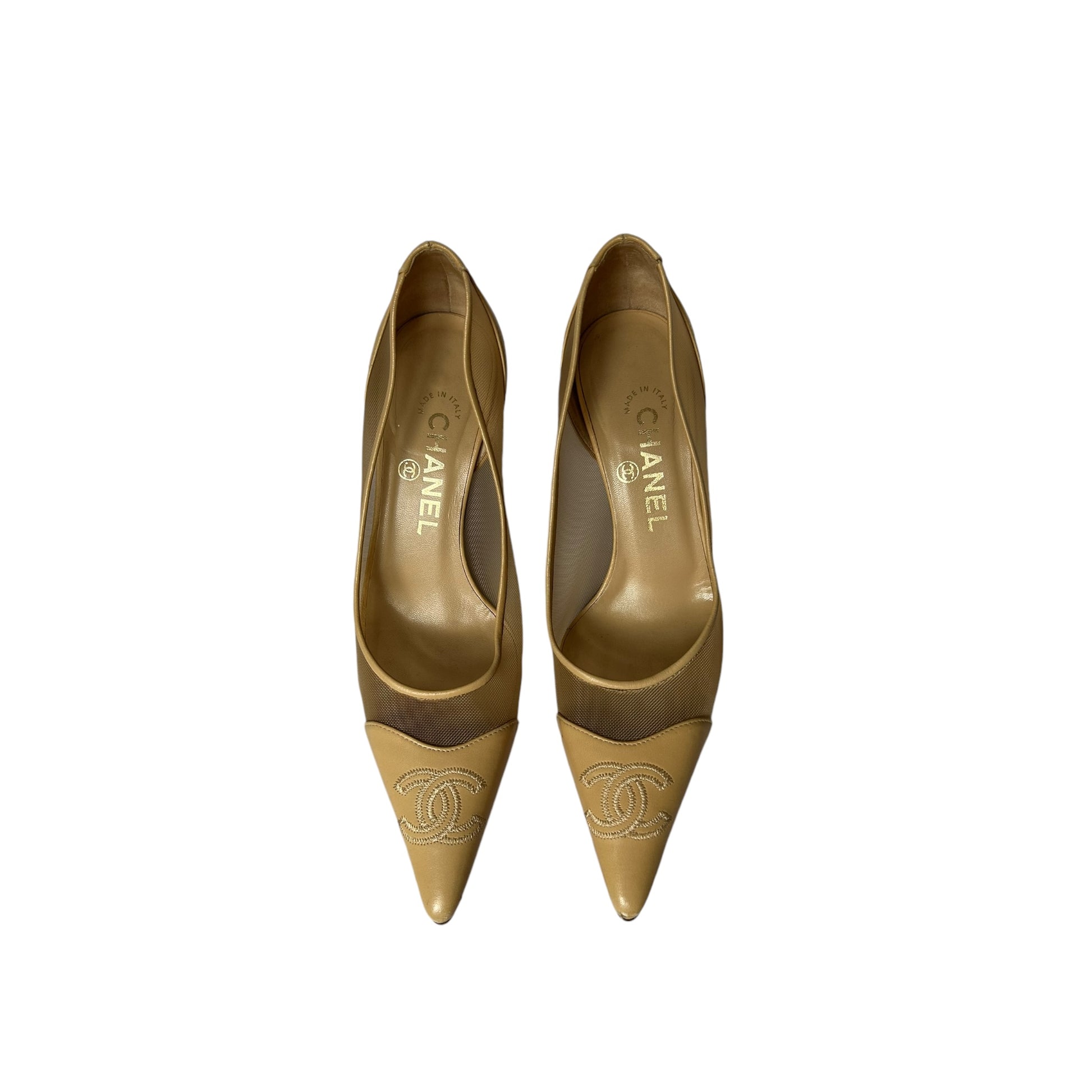 Vintage Chanel CC logo beige mesh heels by Karl Lagerfeld / 37