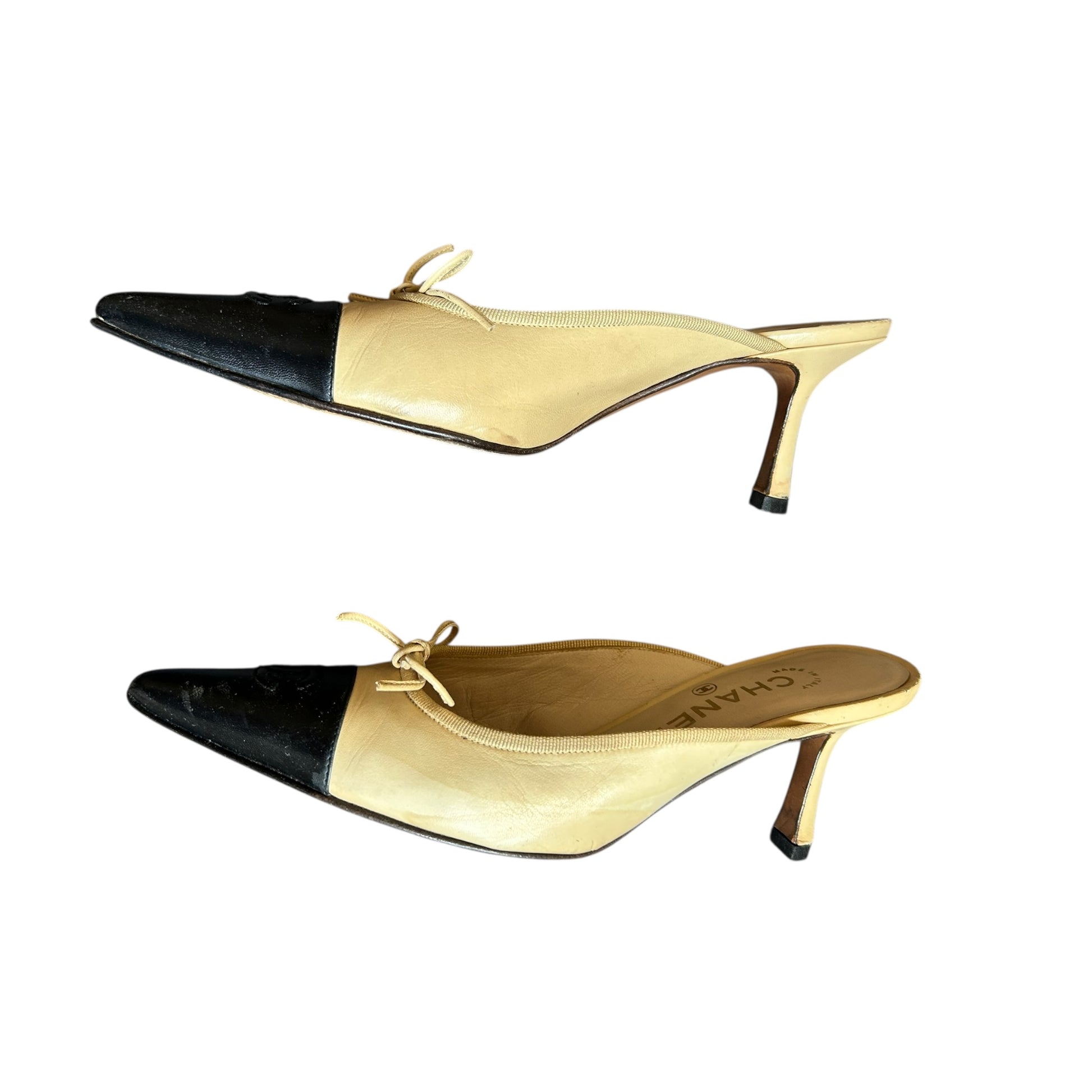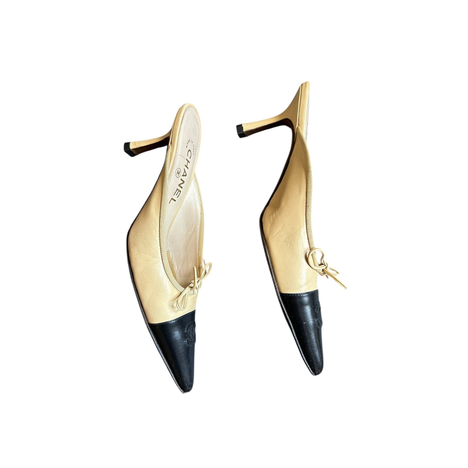 Vintage Chanel two tone CC logo mule heels by Karl Lagerfeld/ 37.5