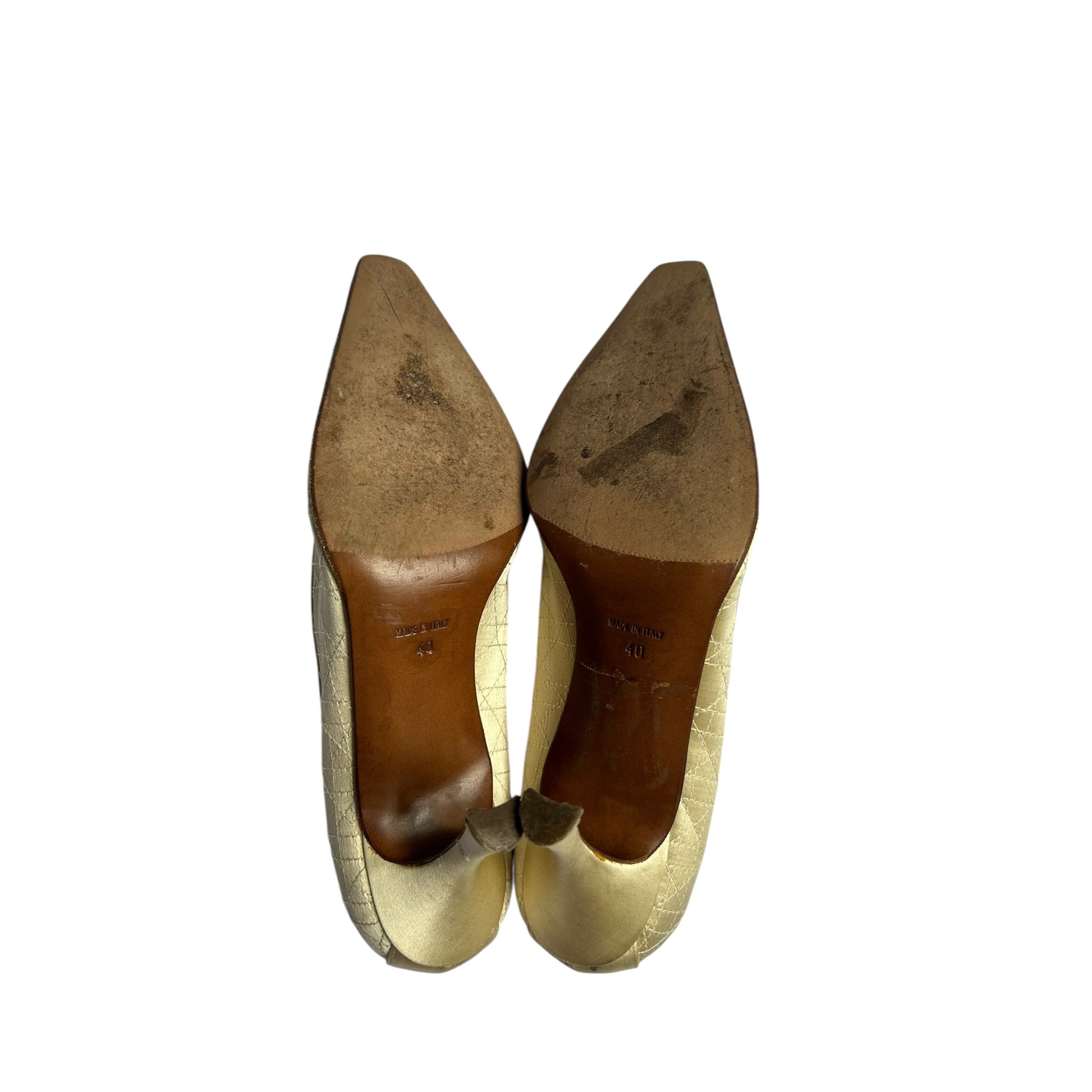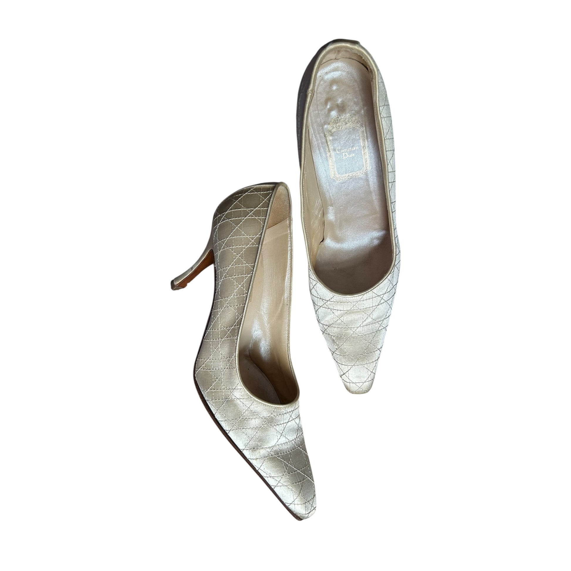 Vintage Dior satin pearl ivory quilted stitching pattern pump heels / 40
