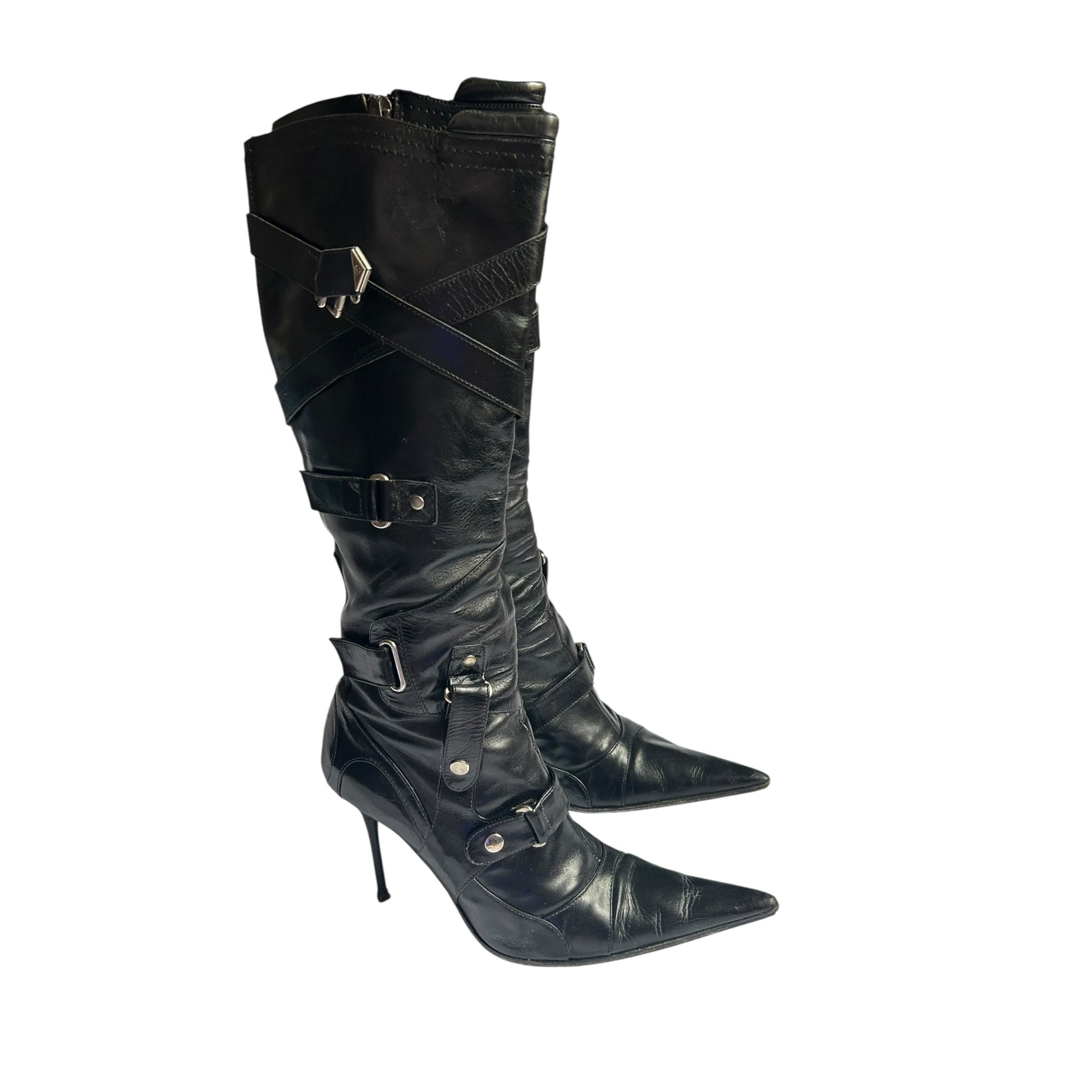 Vintage El Dantes black leather buckle strap boots / 37