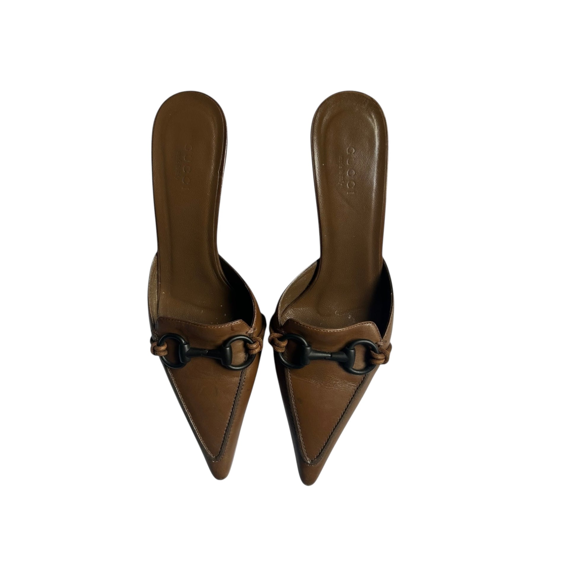 Vintage Gucci by Tom Ford brown horse-bit mule heels / 37