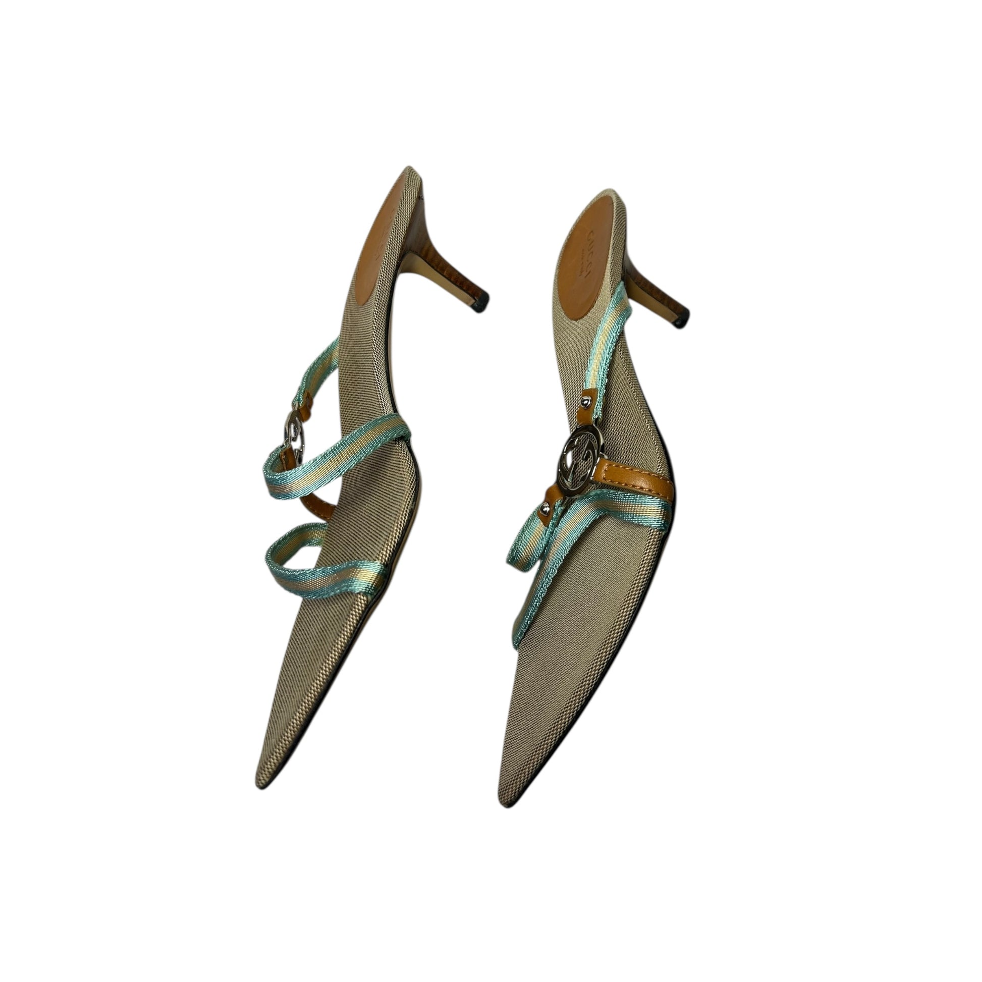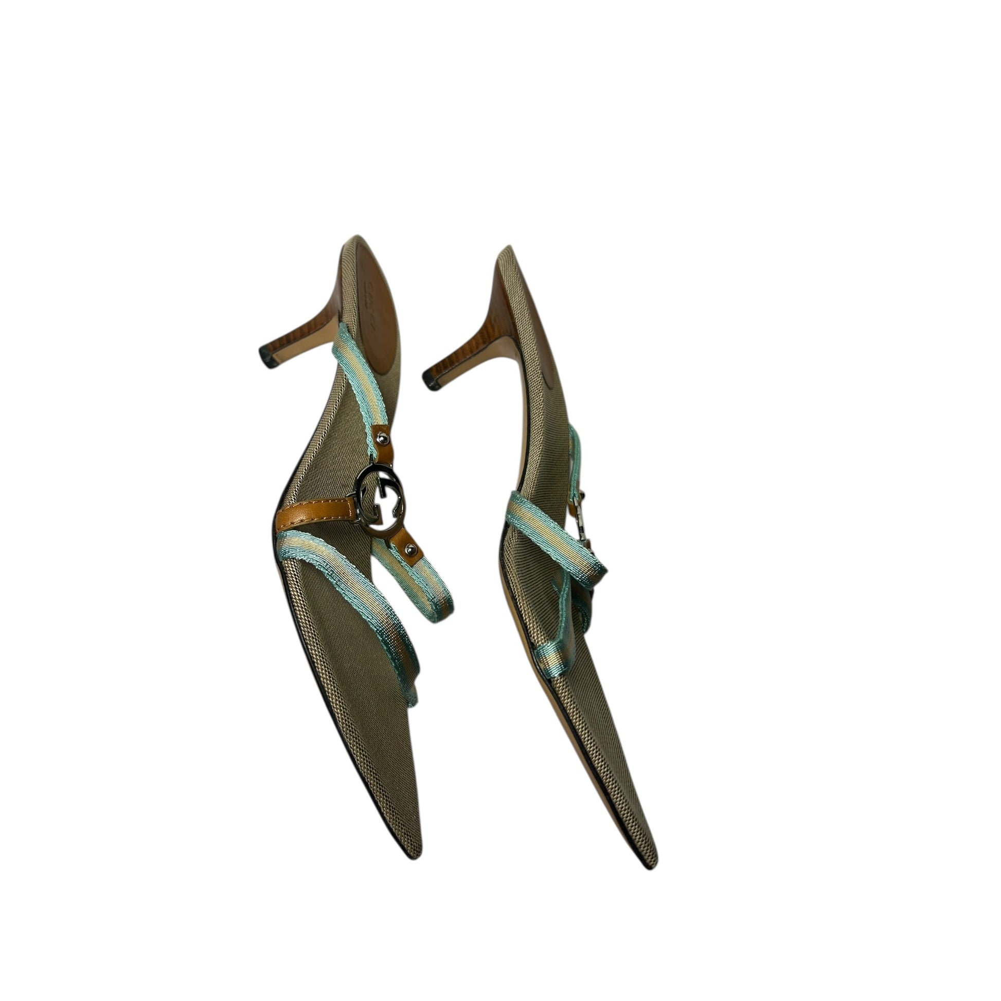Vintage Gucci by Tom Ford cloth G logo turquoise mule heels / 39