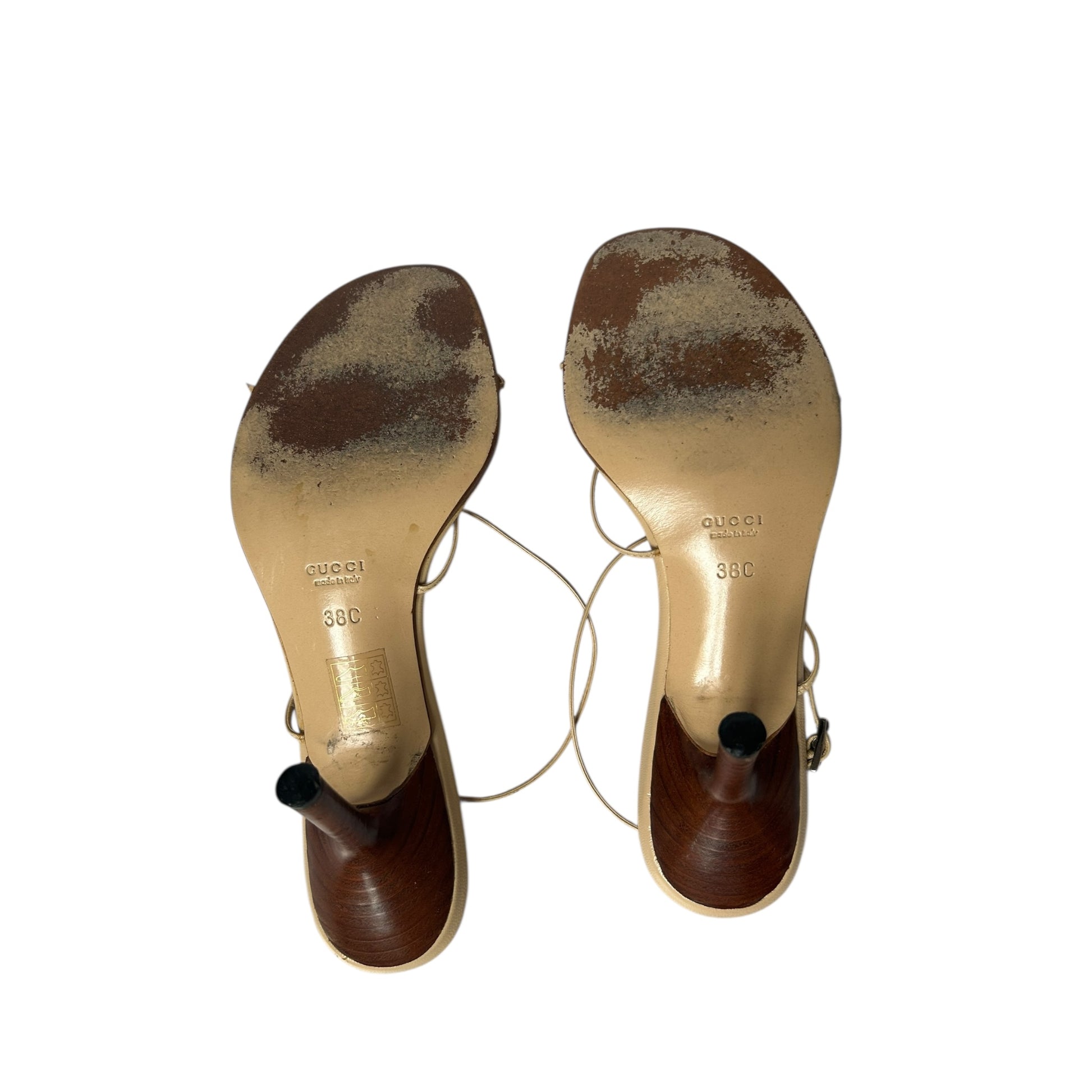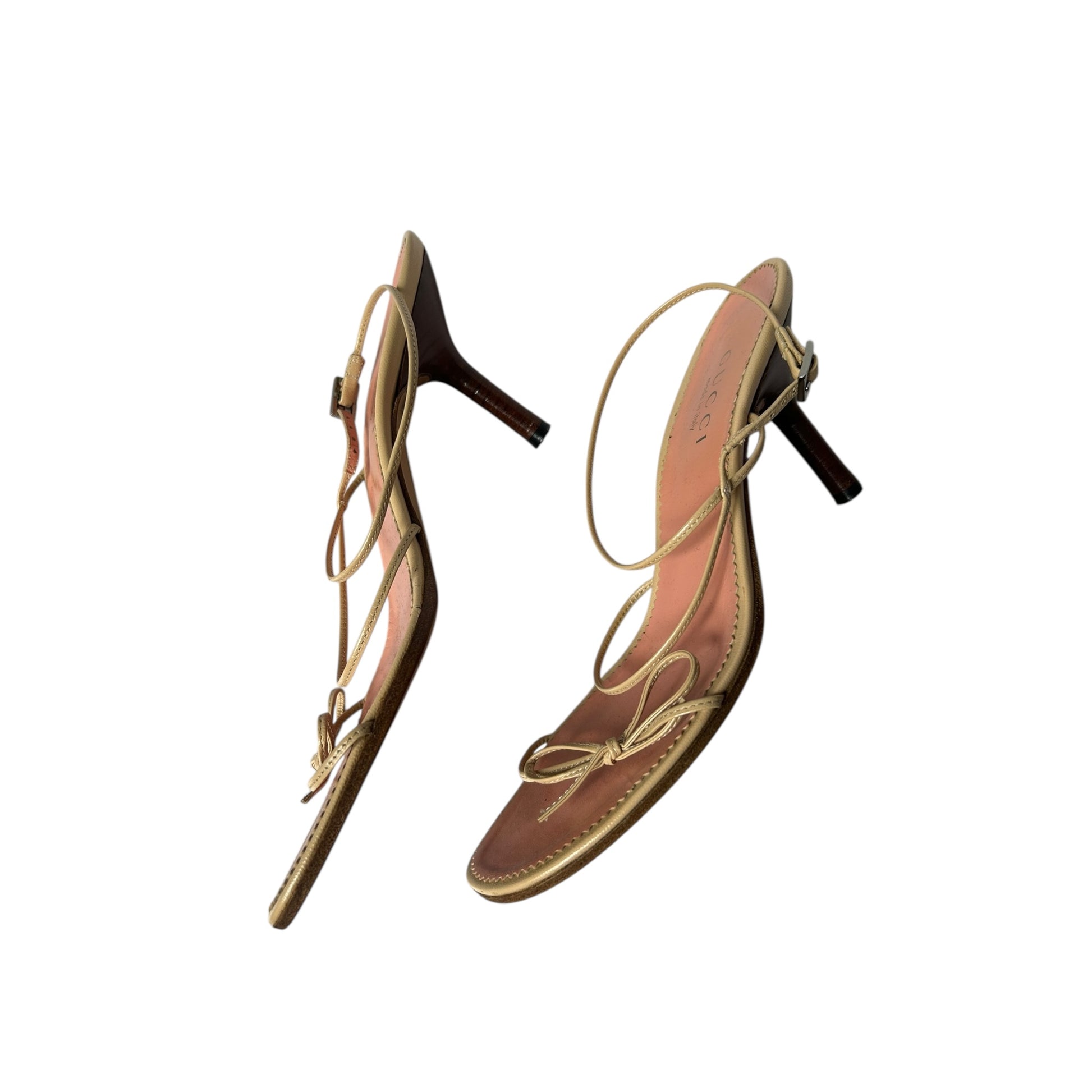 Vintage Gucci by Tom Ford pink & beige bow tie sandal heels / 38-39