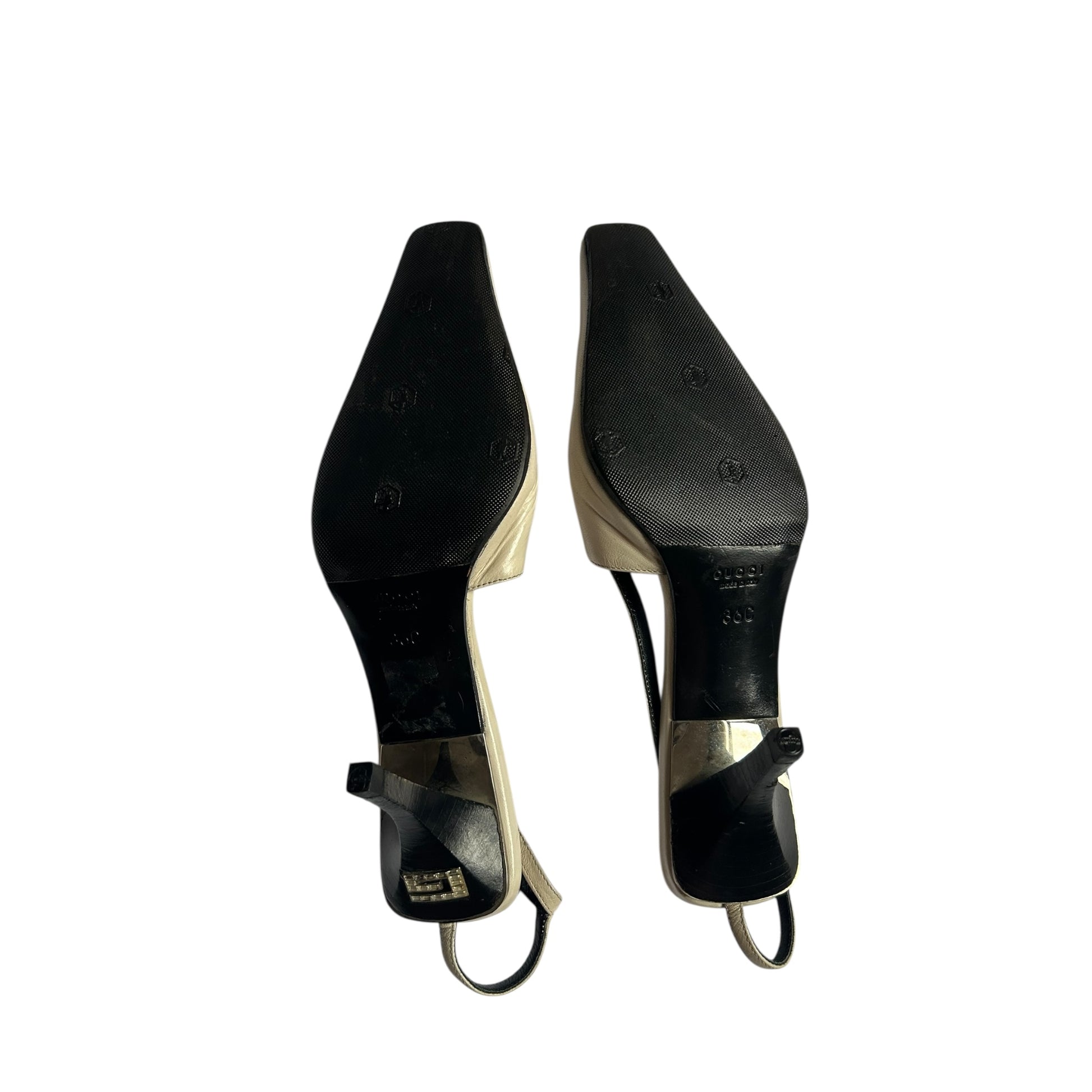 Vintage Gucci FW 1998 G crystal logo cream heels / 36