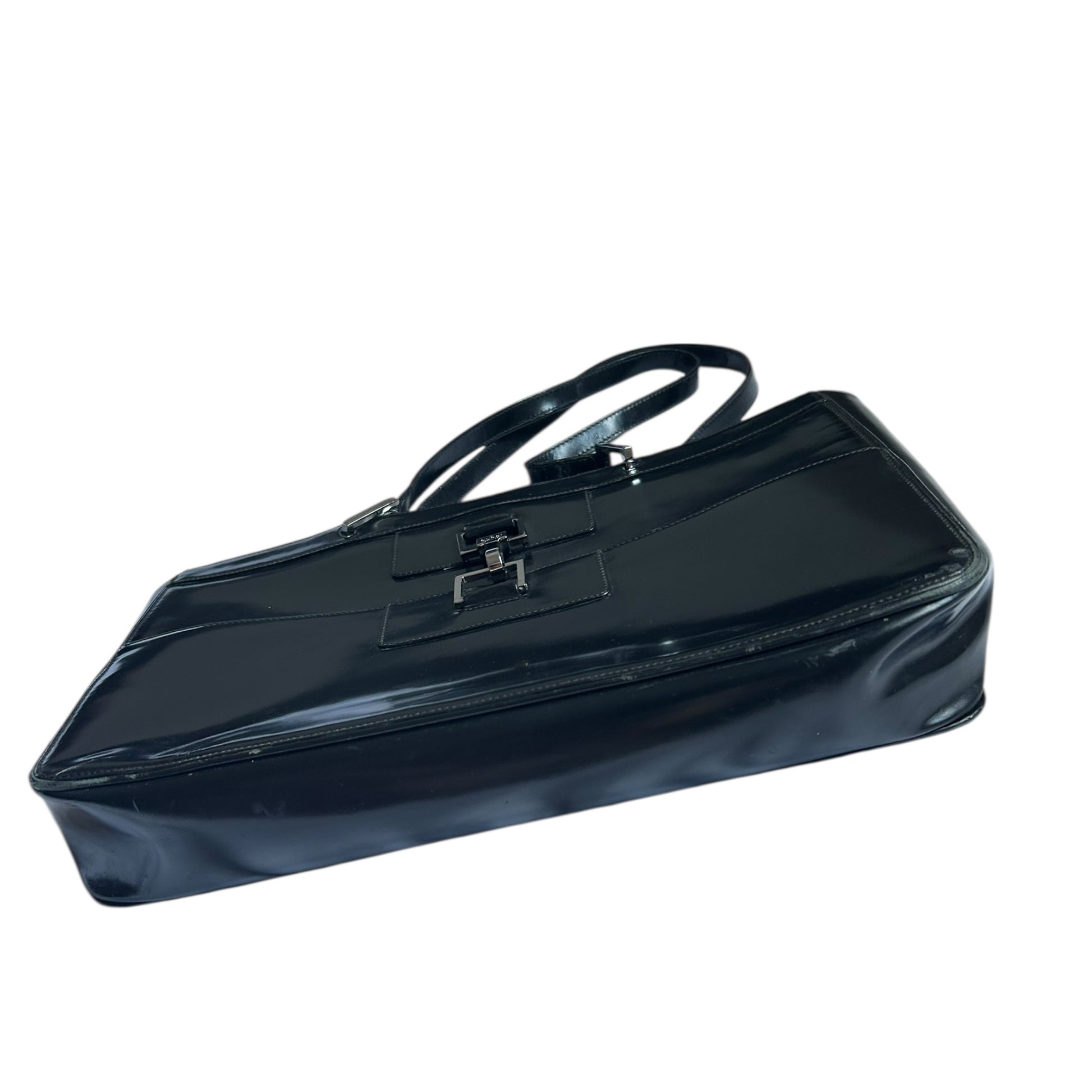 Vintage Gucci Jackie by Tom Ford horse-bit black leather patent tote bag