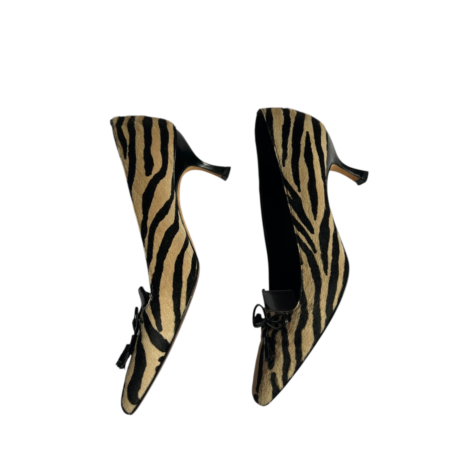 Vintage Jimmy Choo pony hair zebra print heels / 37.5