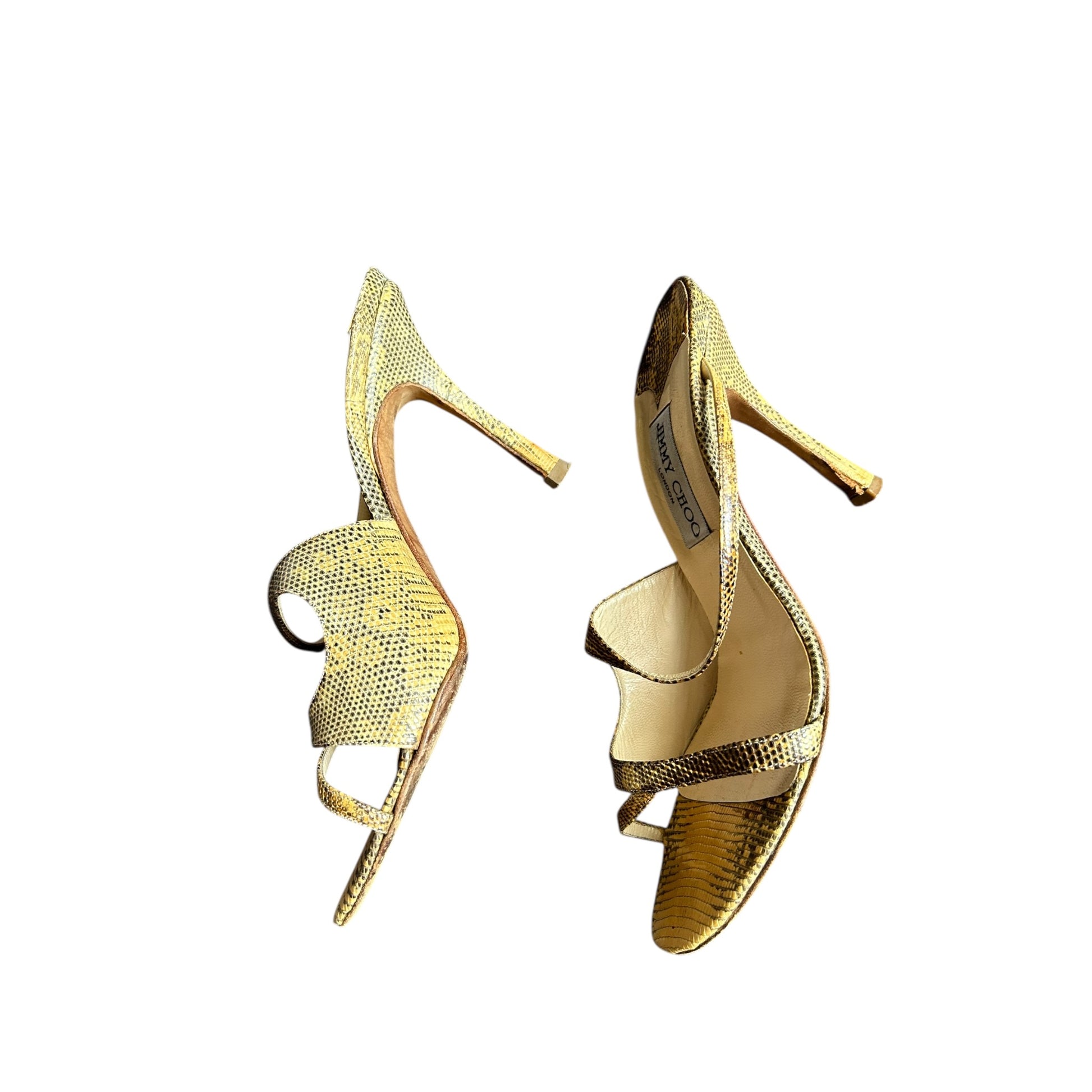 Vintage Jimmy Choo python strappy mule heels / 39