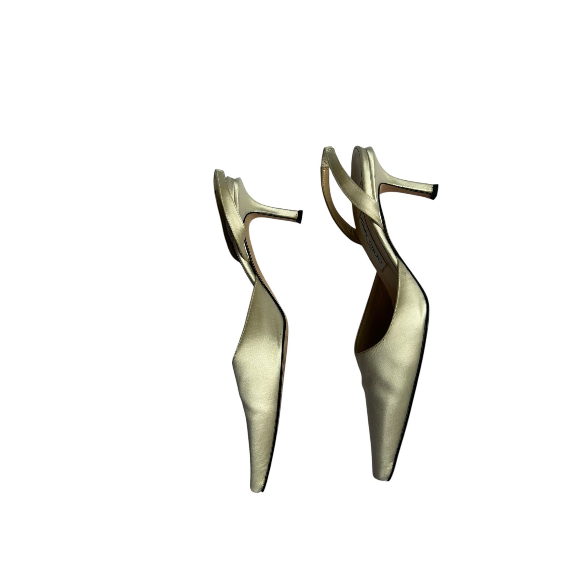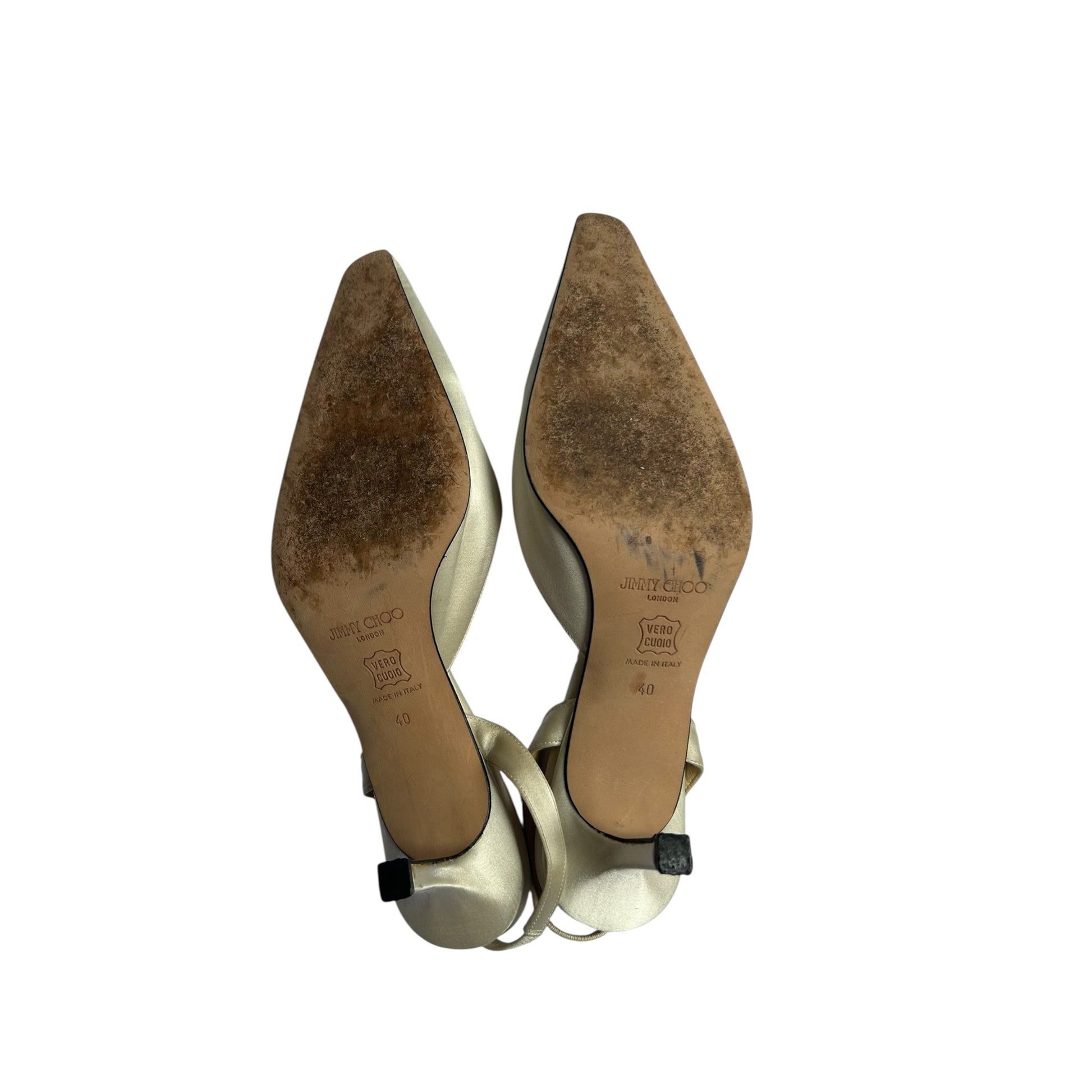 Vintage Jimmy Choo satin pearl sling back heels / 40