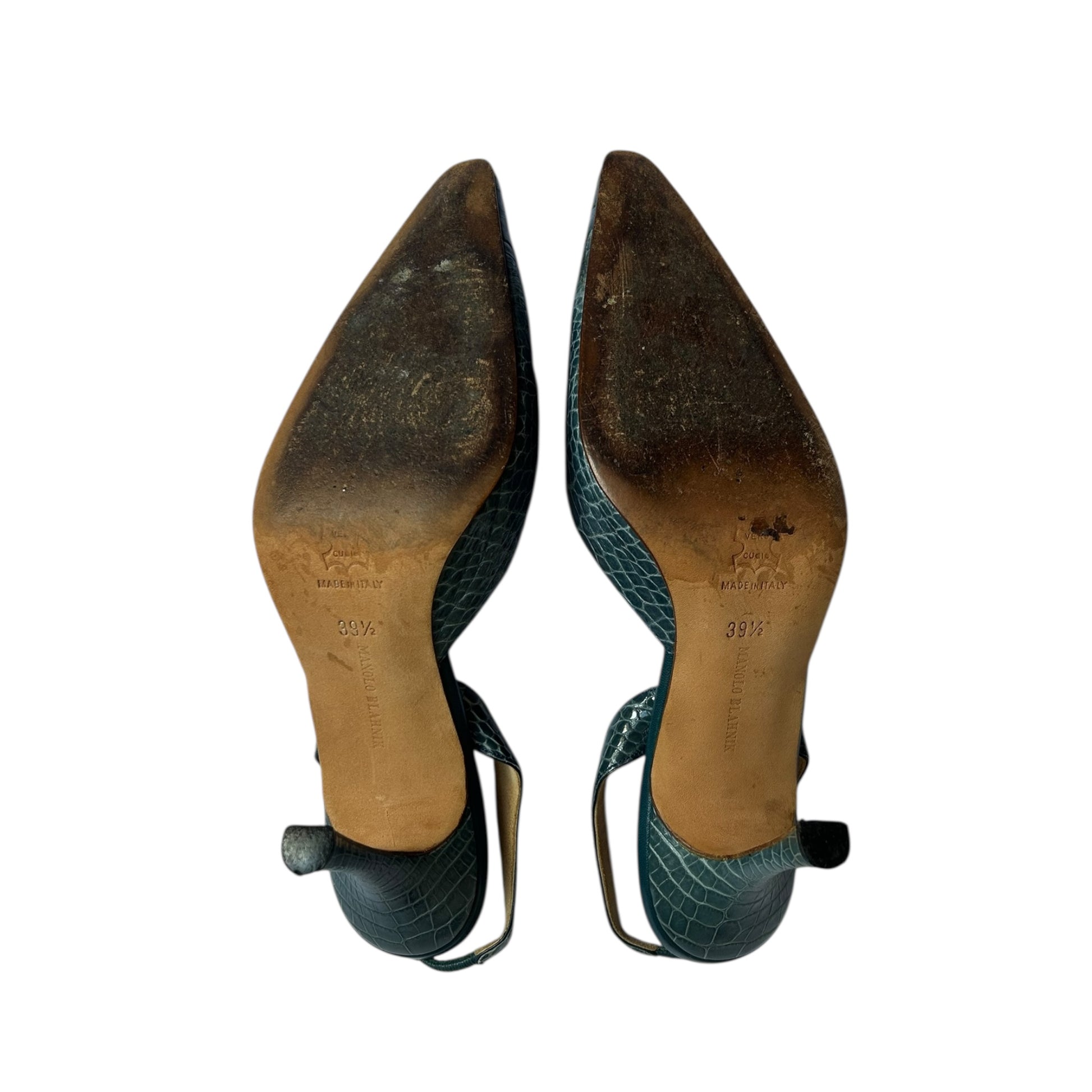 Vintage Manolo Blahnik croc blue Carolyn slingback heels/ 39.5