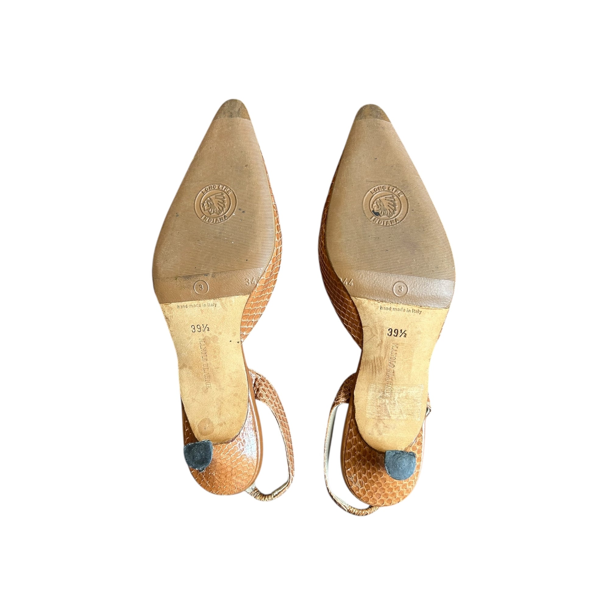 Vintage Manolo Blahnik python tan slingback heels / 39.5