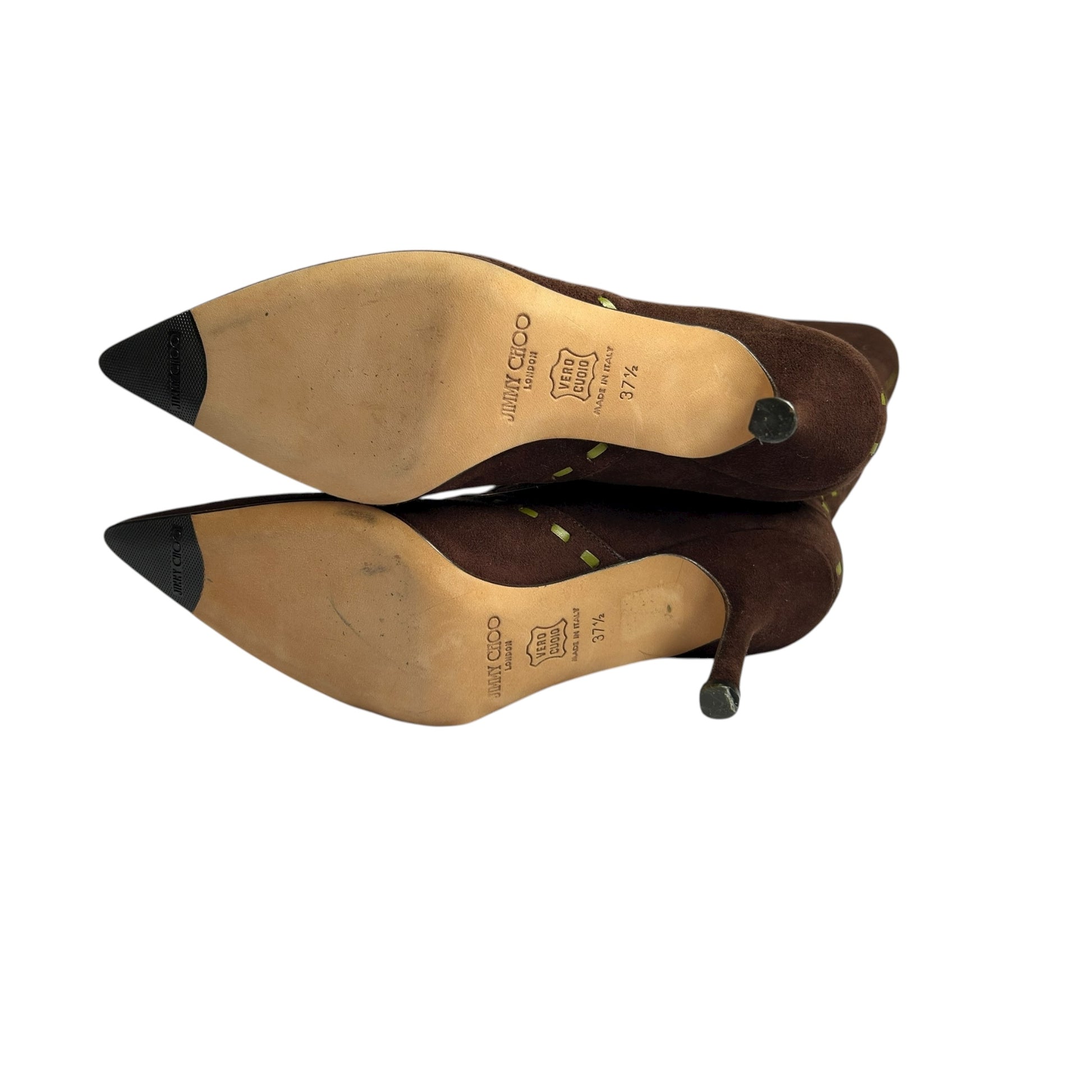 Vintage rare Jimmy Choo brown suede leaves embroidery boots /37.5