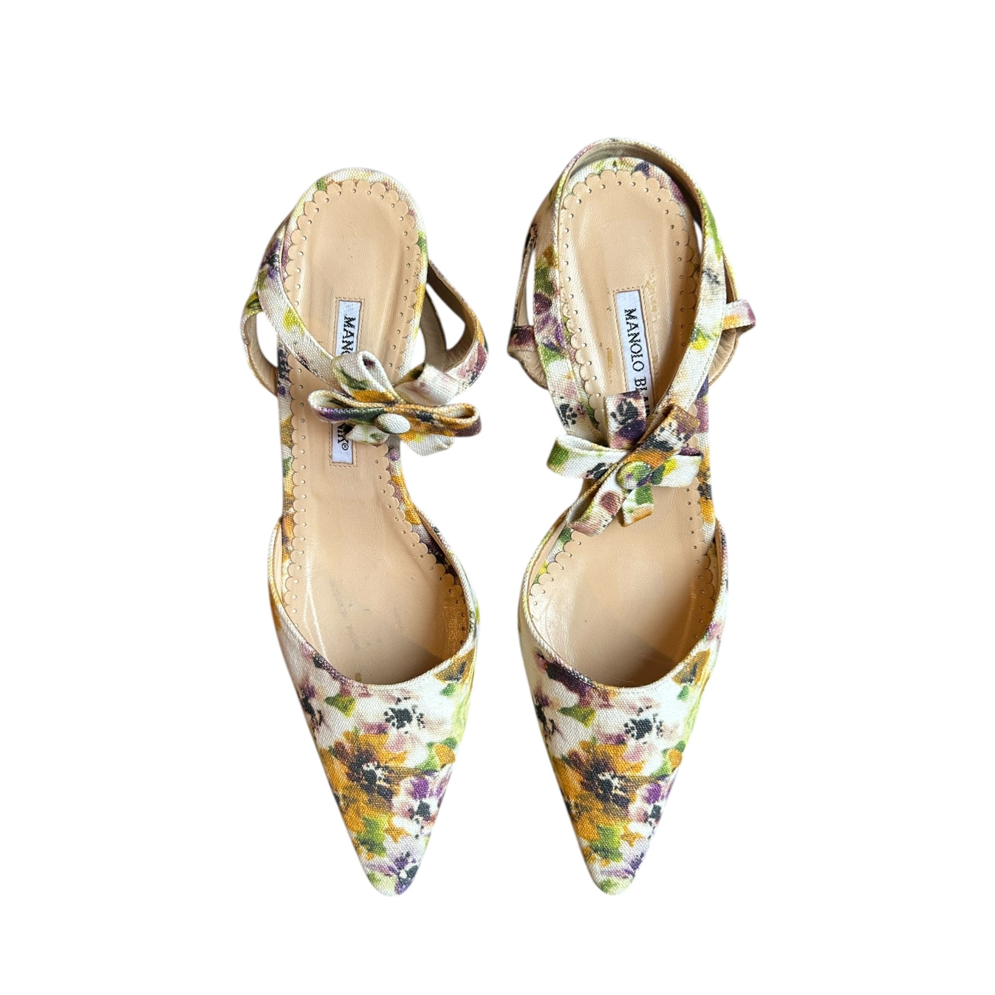 Vintage rare Manolo Blahnik floral canvas heels / 41