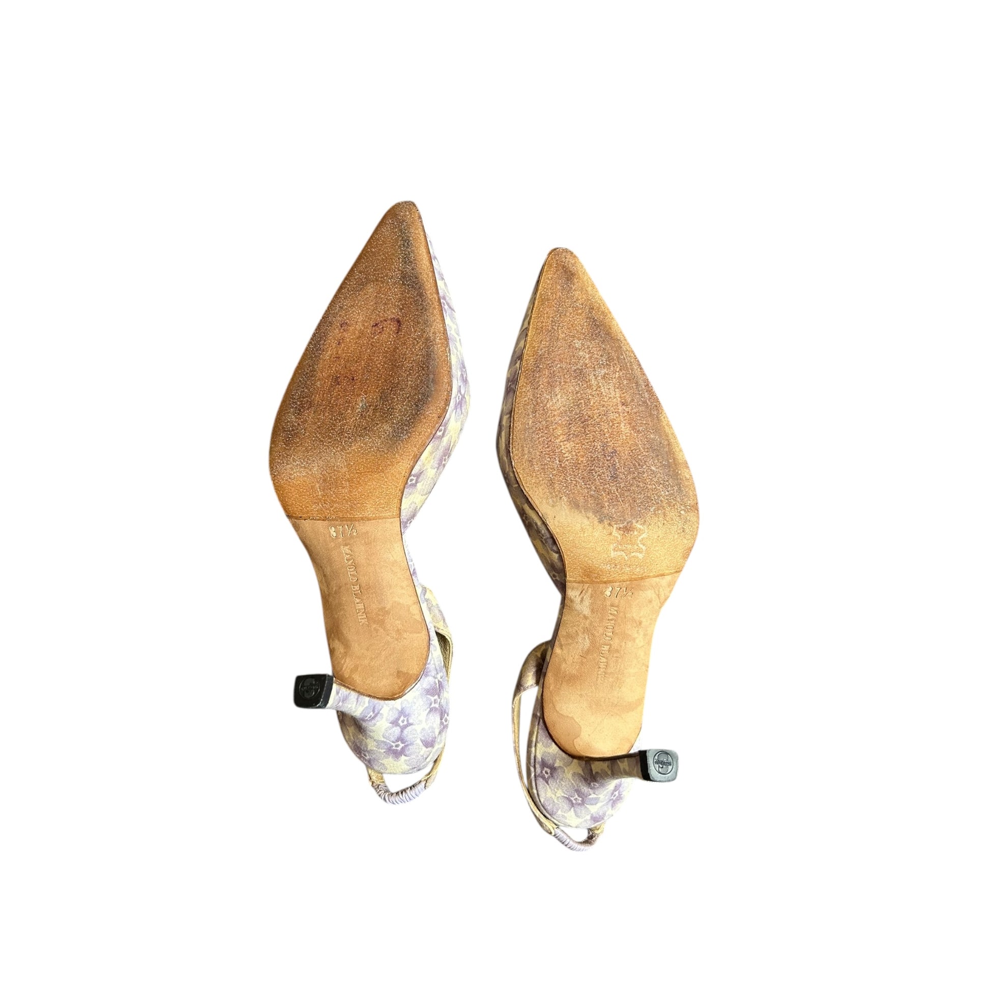 Vintage rare Manolo Blahnik purple floral canvas slingback heels / 37.5